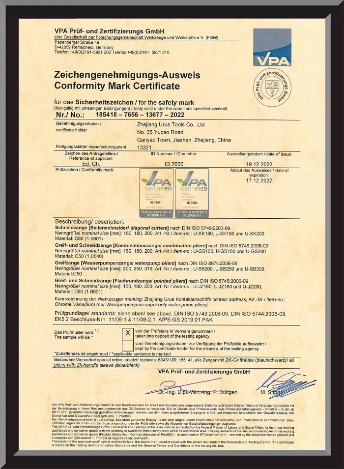 Ditubuhkan pada tahun 1995, Zhejiang URUS Tools Co., Ltd ialah pengilang profesional yang mengkhusus dalam mata gerudi, playar dan set alatan tangan. Dengan pensijilan ISO9001:2015 dan pelbagai anugerah kebangsaan, syarikat itu menekankan kualiti, inovasi dan reka bentuk ergonomik dalam semua produknya. Alat URUS menyepadukan prinsip reka bentuk berpusatkan pengguna ke dalam playarnya, menggabungkan keselesaan, ketahanan dan ketepatan untuk memenuhi keperluan pengguna profesional dan DIY di seluruh dunia.